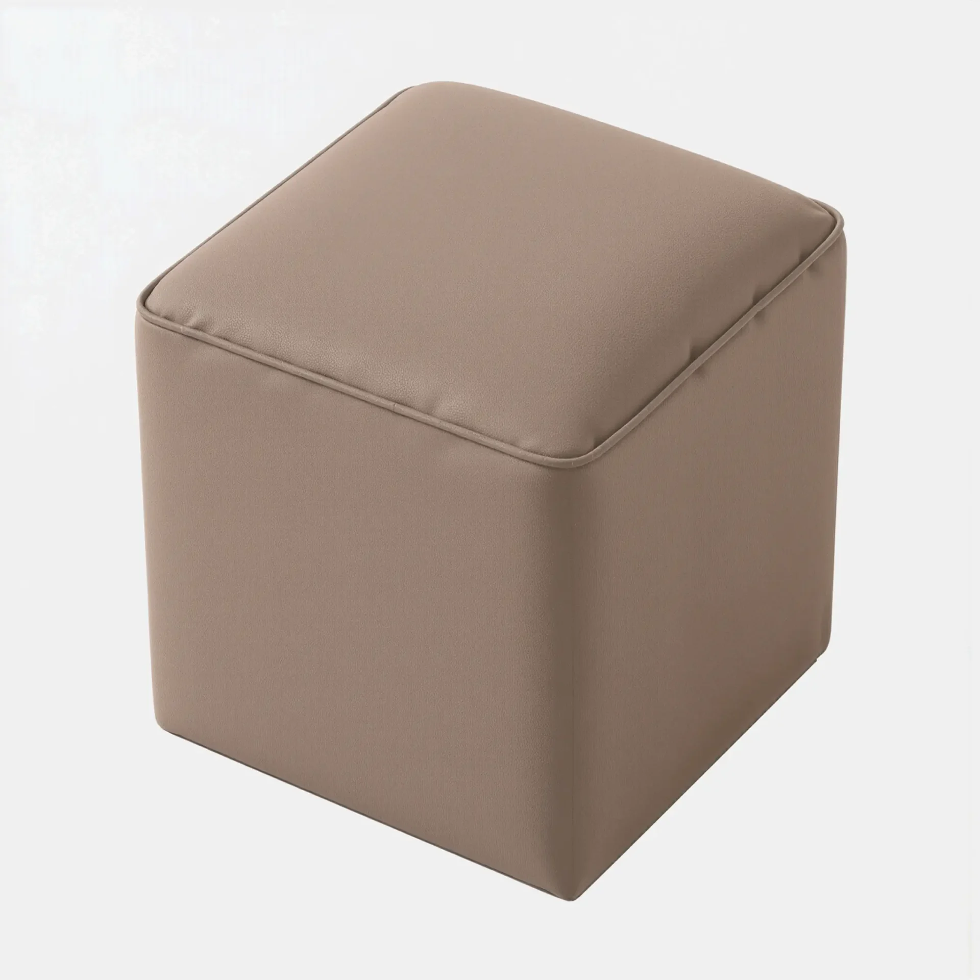 Its simple cube shape and softly upholstered finish create a calm, understated look that blends easily into a variety of living spaces.