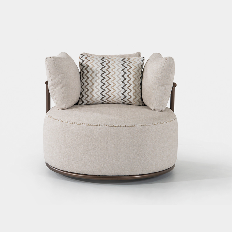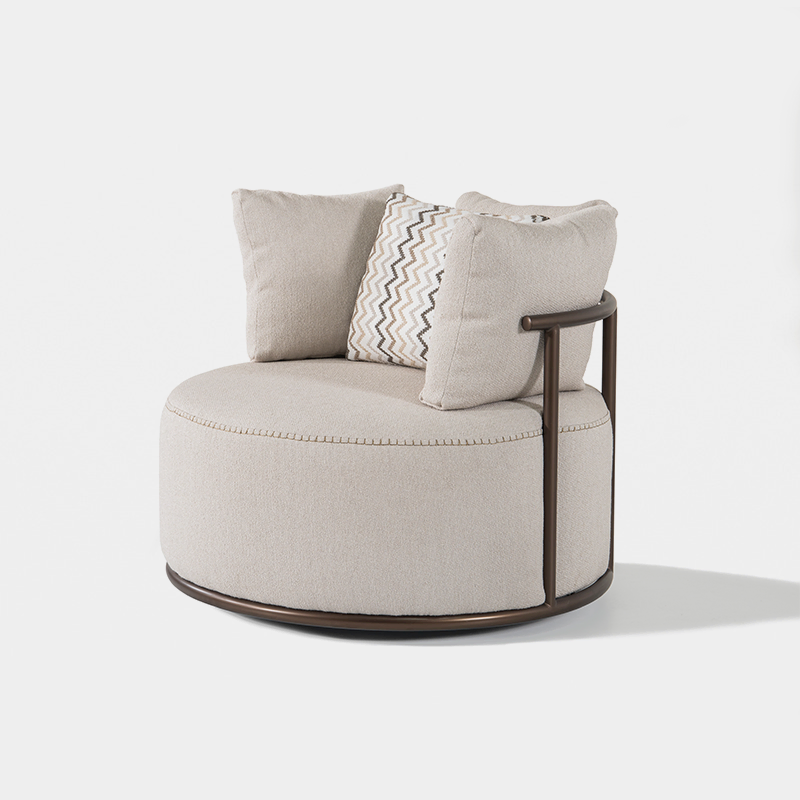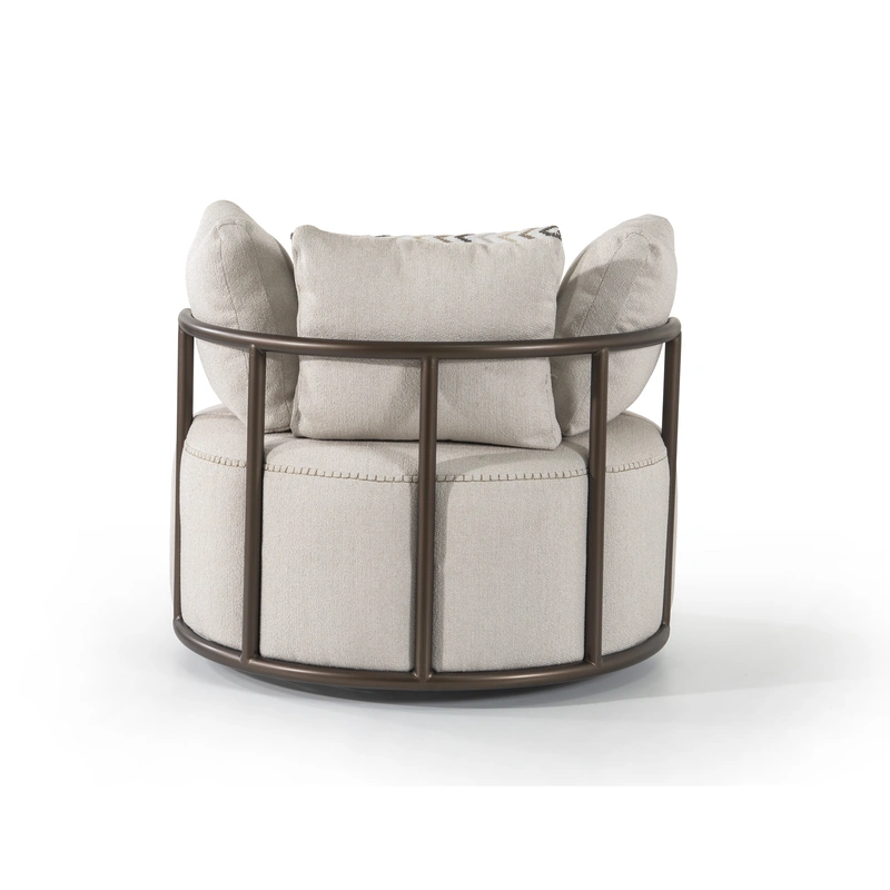 - The curved circular back design offers a cocoon-like comfort, perfectly balancing structure and softness.