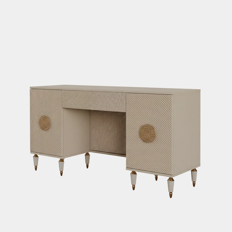 - A refined dresser with textured details and golden accents.