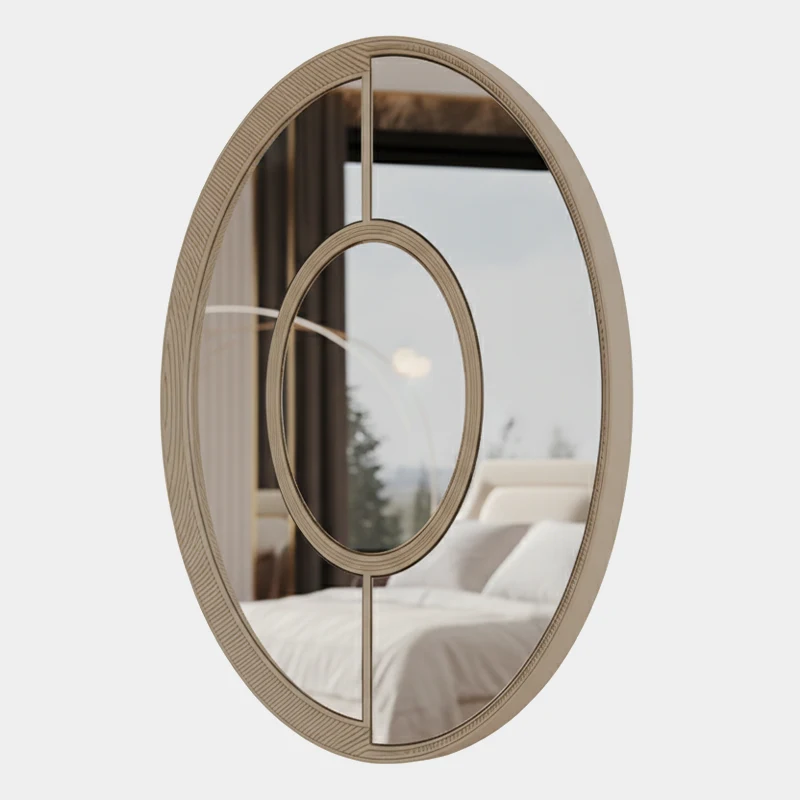 The Eira Mirror, with its bold round frame, adds sculptural elegance to any space.