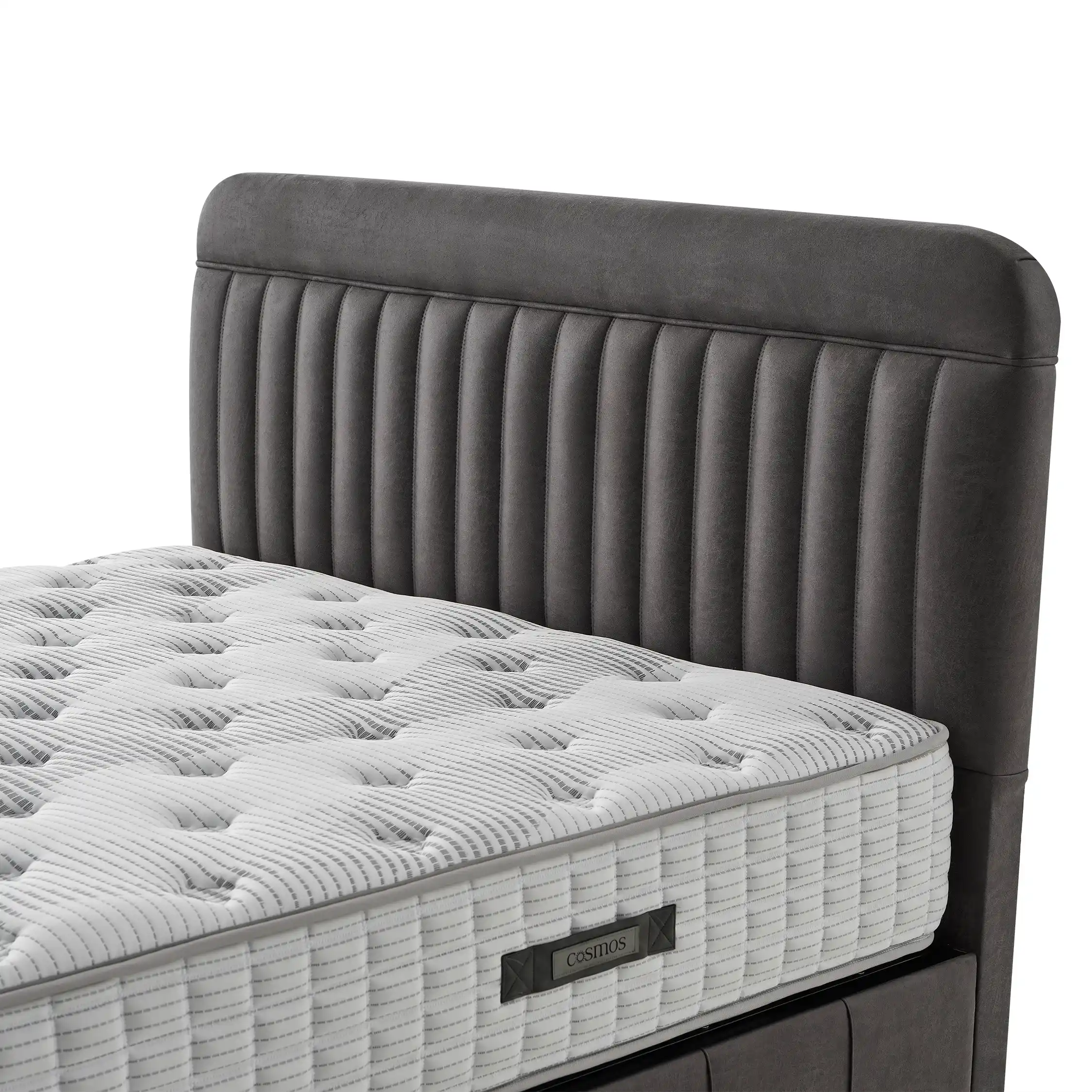 The Eldrin Headboard brings a refined, upholstered presence to modern bedrooms. Its vertically channeled design adds subtle texture while maintaining a clean, contemporary profile. Designed to work seamlessly within modular bed setups, it allows flexible styling across compatible components.