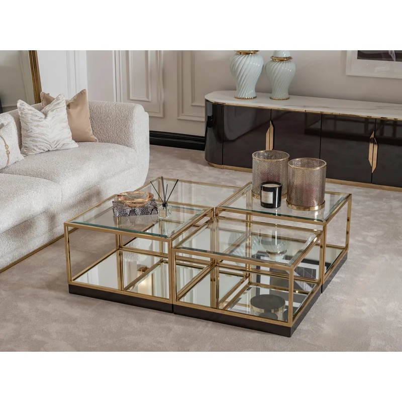 The Norvyn Coffee Table, a composition of four golden cubes, transforms versatility into an art form of modern luxury.