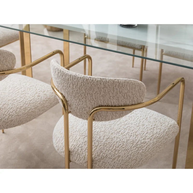 - Golden stainless-steel framing forms slender yet sturdy lines, lending a modern architectural elegance to the design.