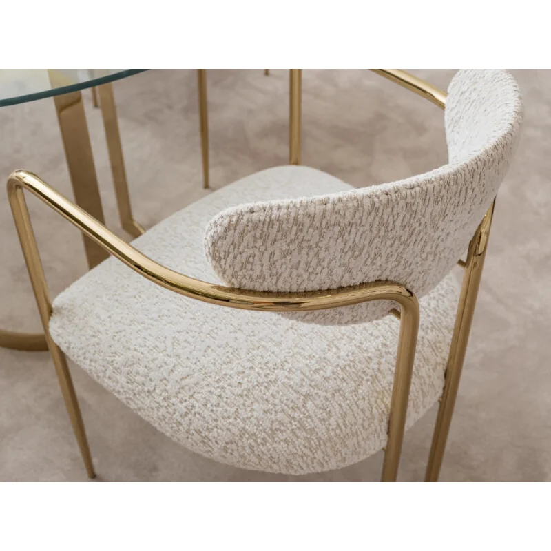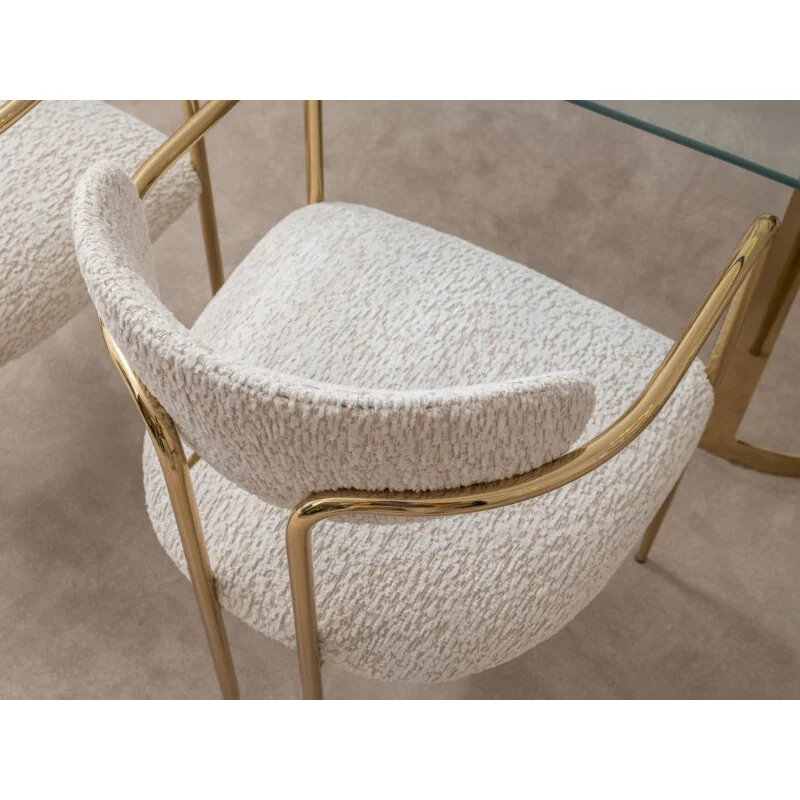 - The open arms enhance its airy character, while the padded seat promises hours of effortless dining comfort.