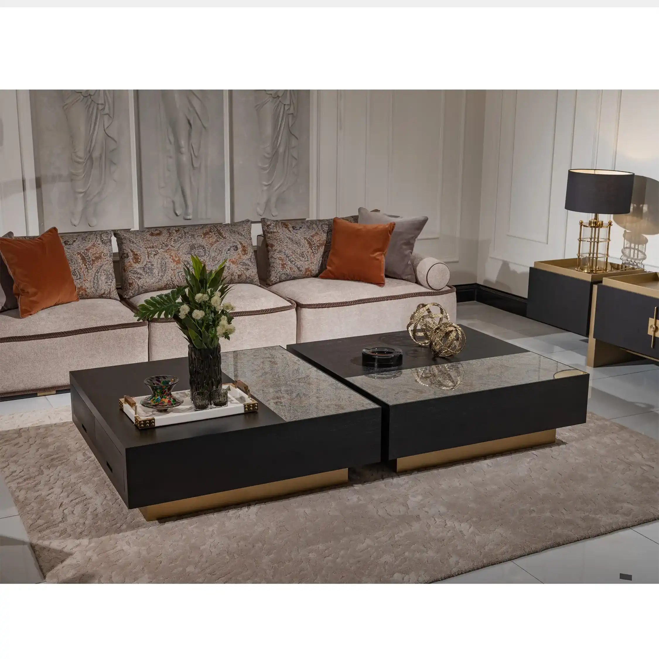 The Patra Coffee Table is a modern square coffee table designed for contemporary living rooms. Its low-profile form and generous surface make it an ideal centerpiece for sectional or sofa seating. Integrated drawers provide practical storage while maintaining a clean, architectural look.