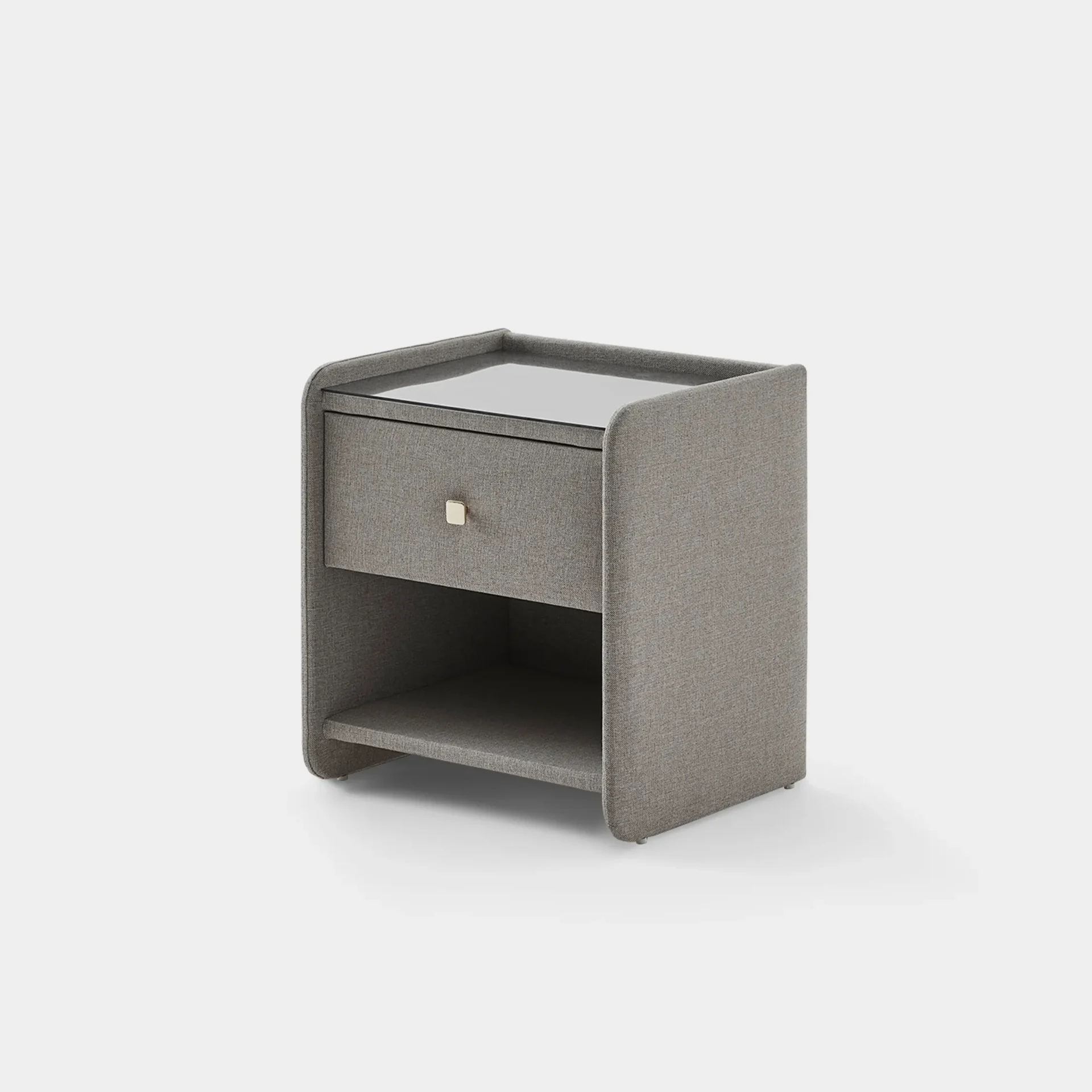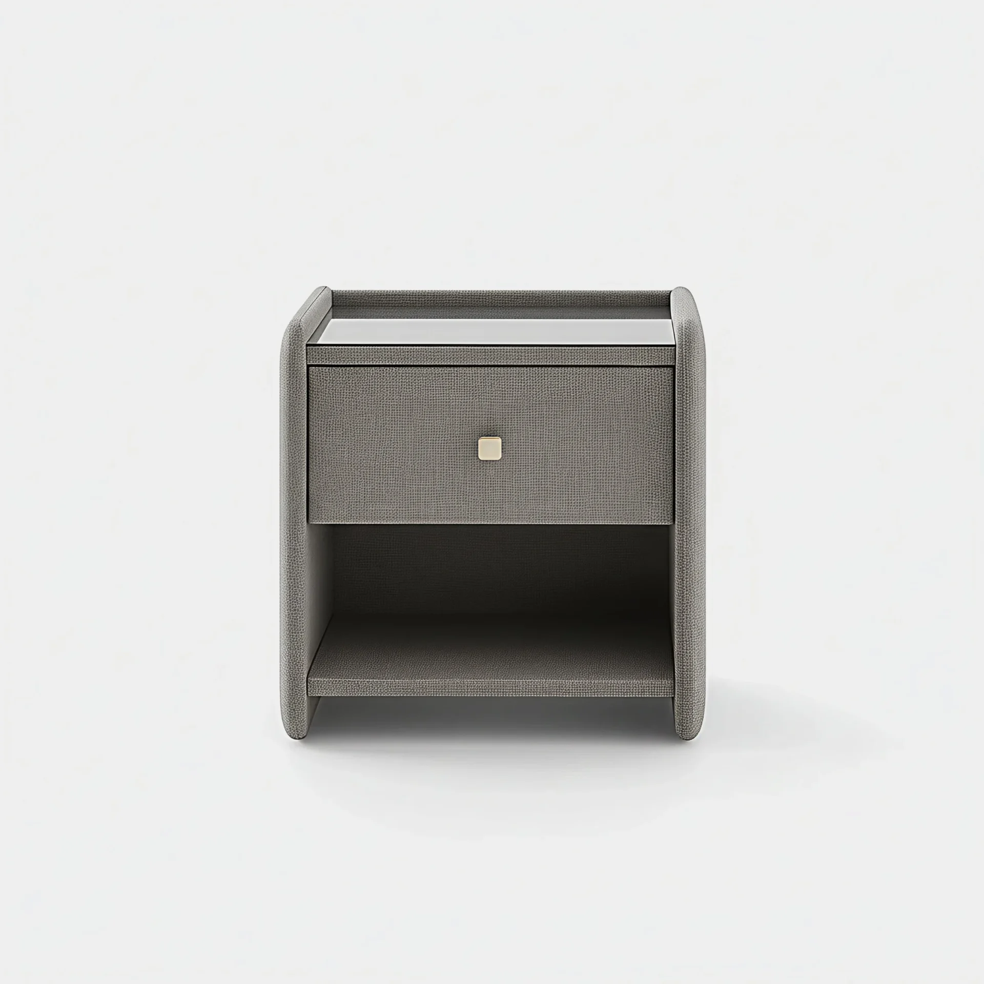 Its soft, wrapped silhouette adds warmth beside the bed while keeping essentials within easy reach.