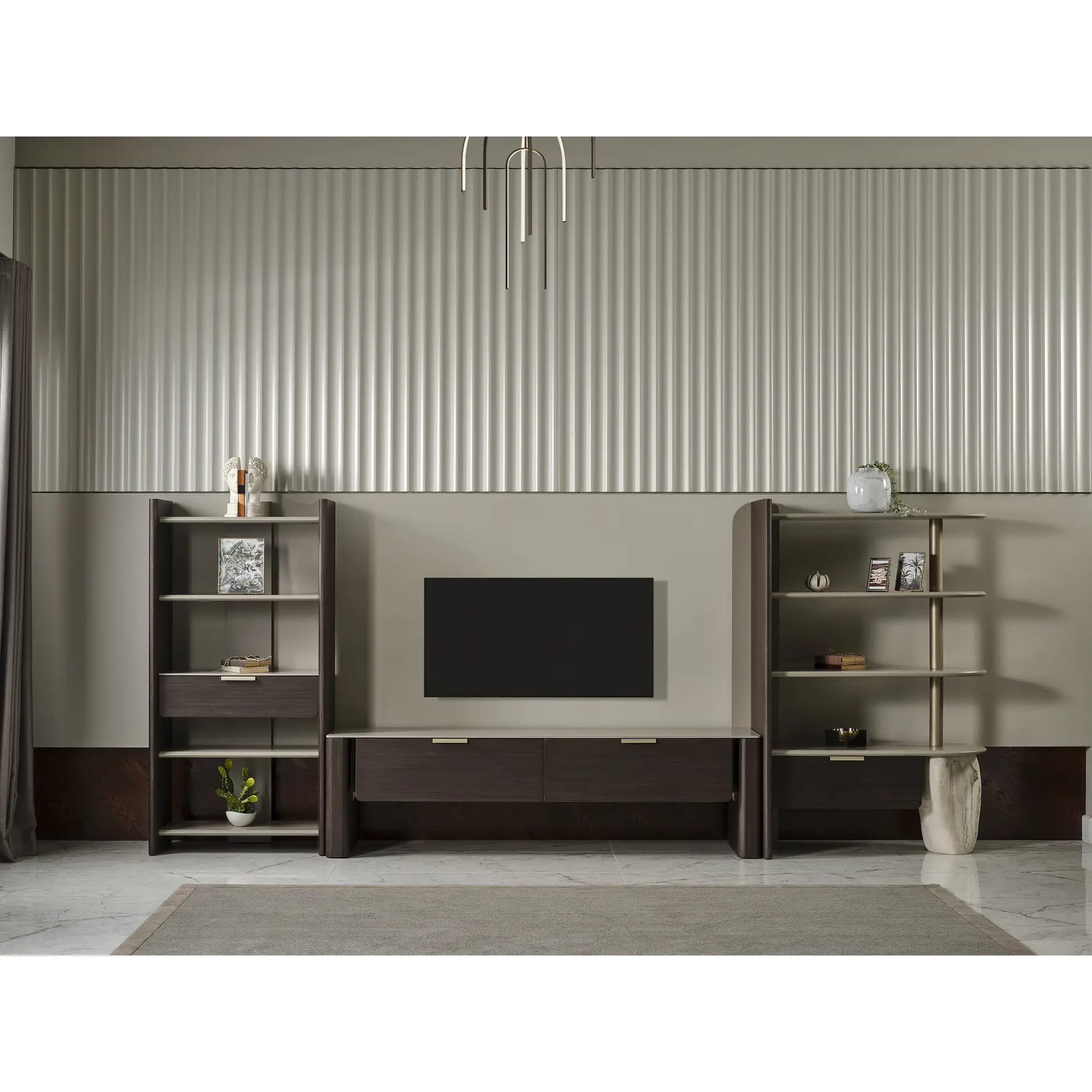 A single drawer placed at the center adds discreet storage without interrupting the clean, symmetrical layout. Whether styled with books, decorative objects, or personal accents, the Tarra Bookshelf brings order and quiet refinement to modern living spaces—on its own or paired with the Tarra TV Unit.