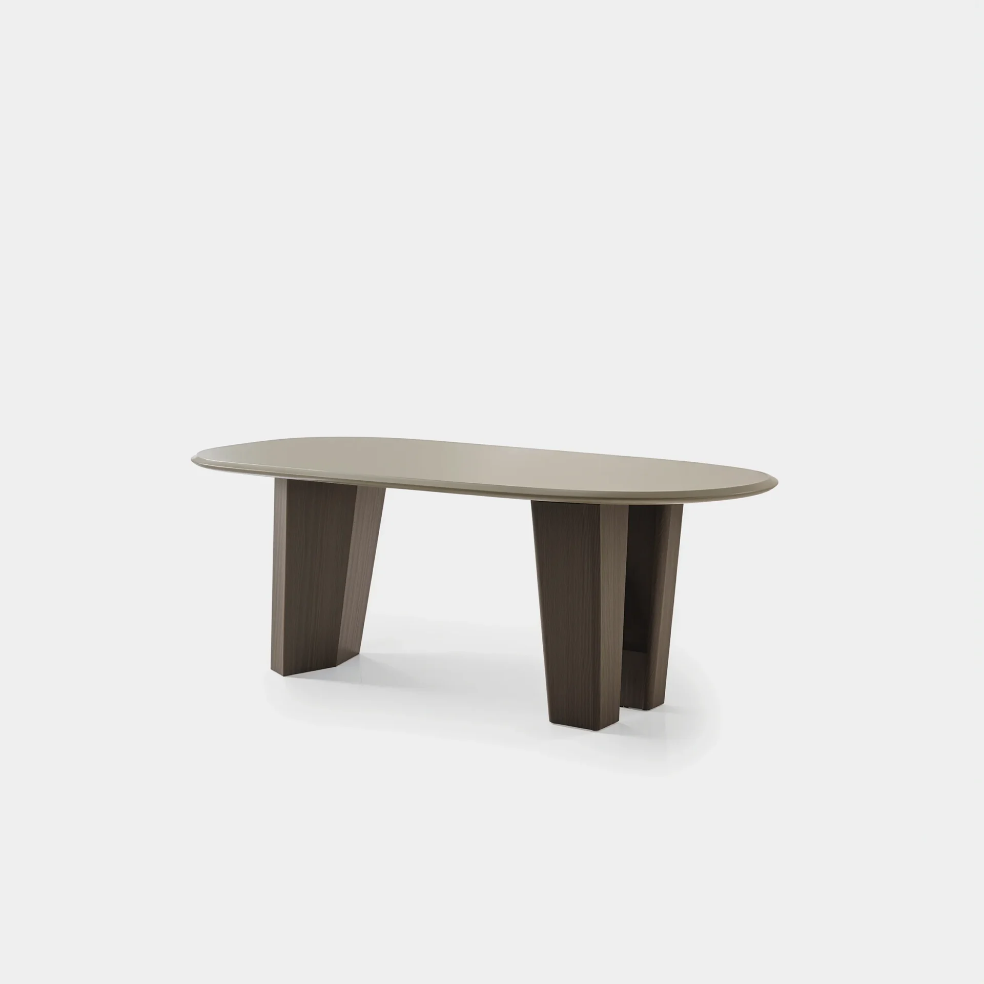 Its sculptural base and softly rounded top create a calm focal point at the center of the room.