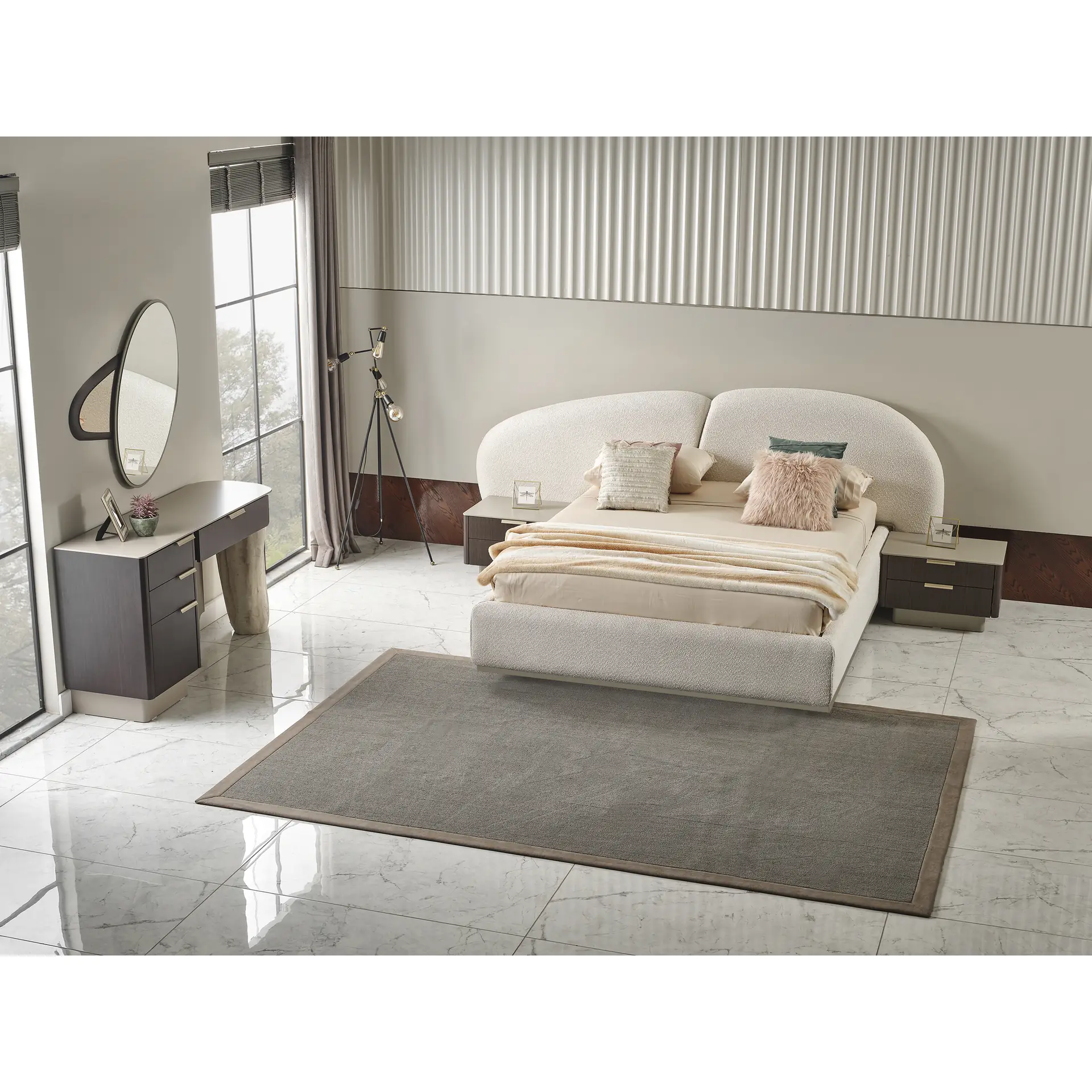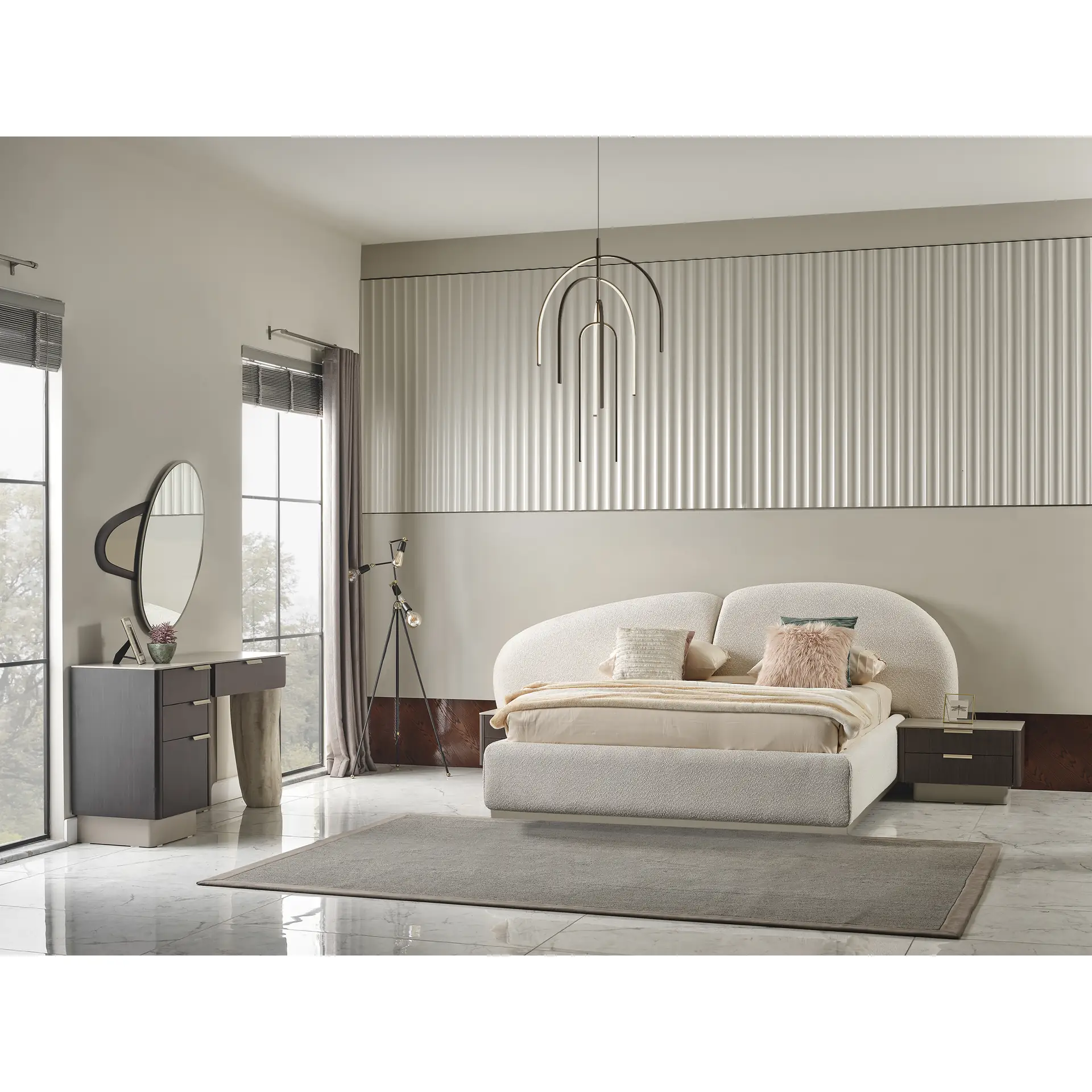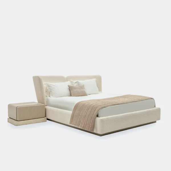 With two discreet drawers, Tarra offers practical bedside storage while maintaining a clean, uncluttered appearance. Ideal for contemporary bedrooms, it brings a sense of order and calm—whether placed beside an upholstered bed or paired with natural textiles and soft lighting.