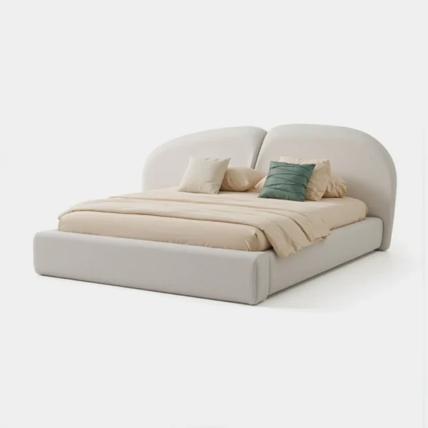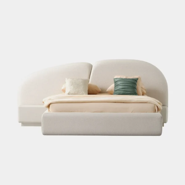 The Tarra Stone Bookshelf brings an architectural rhythm to the space through its asymmetrical shelving and layered materials. Warm wood surfaces frame a series of softly rounded shelves, while slim vertical supports add lightness and visual flow. The composition feels intentional yet relaxed—designed to be both functional and expressive.