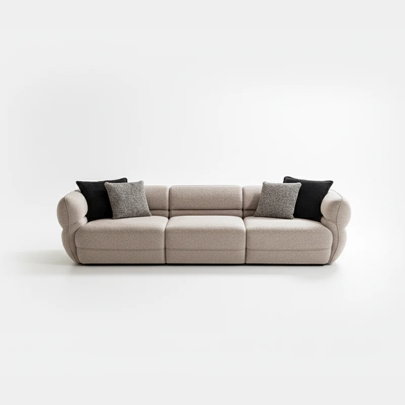 - Modern, sculptural silhouette with seamless, rounded contours and a generously proportioned profile